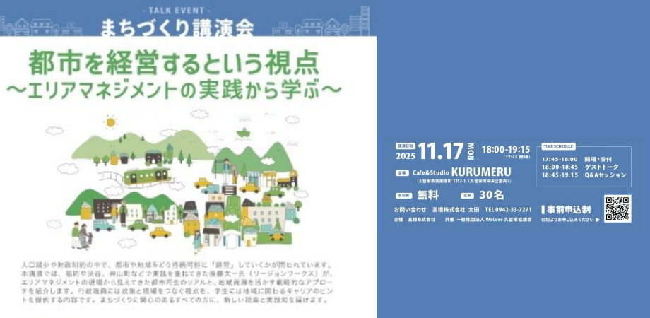 エリアマネジメントの実践から学ぶ〜・日時:2025年11月17日(月) 18:00〜19:15(17:45会場)